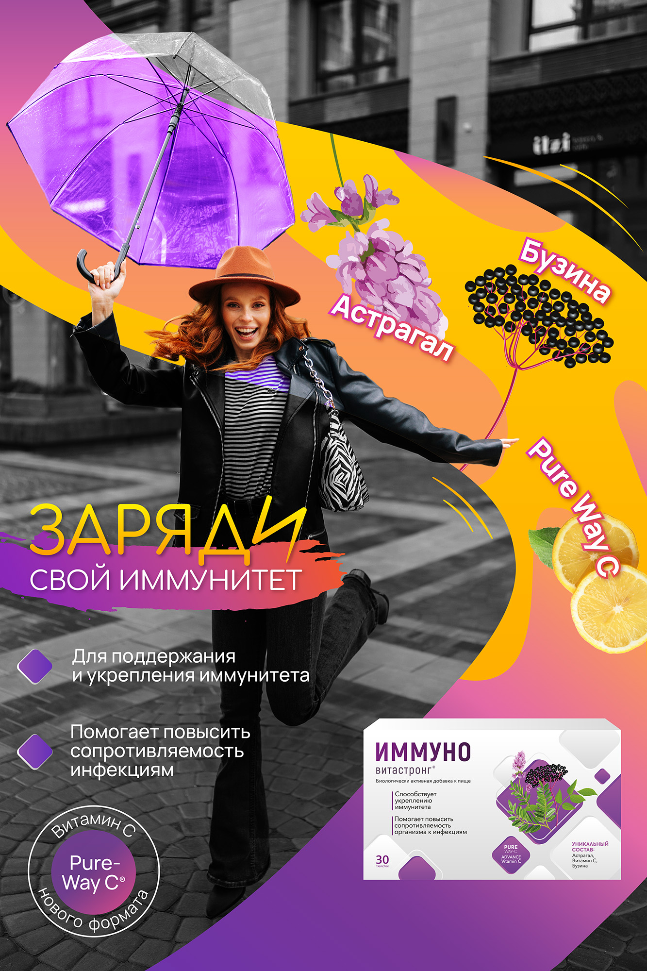 - Слоган кампании: «Заряди свой иммунитет с Иммуно ВитаСтронг»